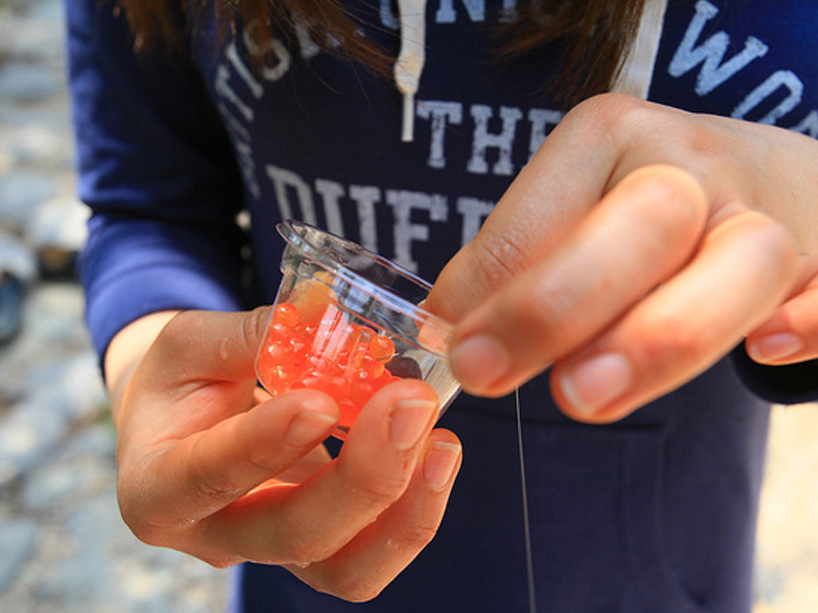 (2)イクラをエサに使用しているため、女性や子供でも安心して仕掛けを作ることができます。
