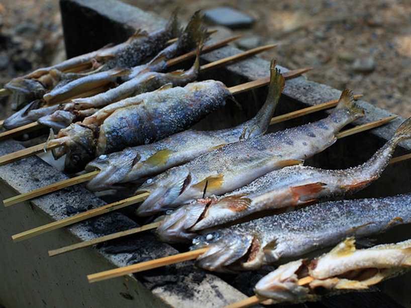 (3)釣った魚や手づかみで捕まえた魚を塩焼きにしておいしくいただけます。